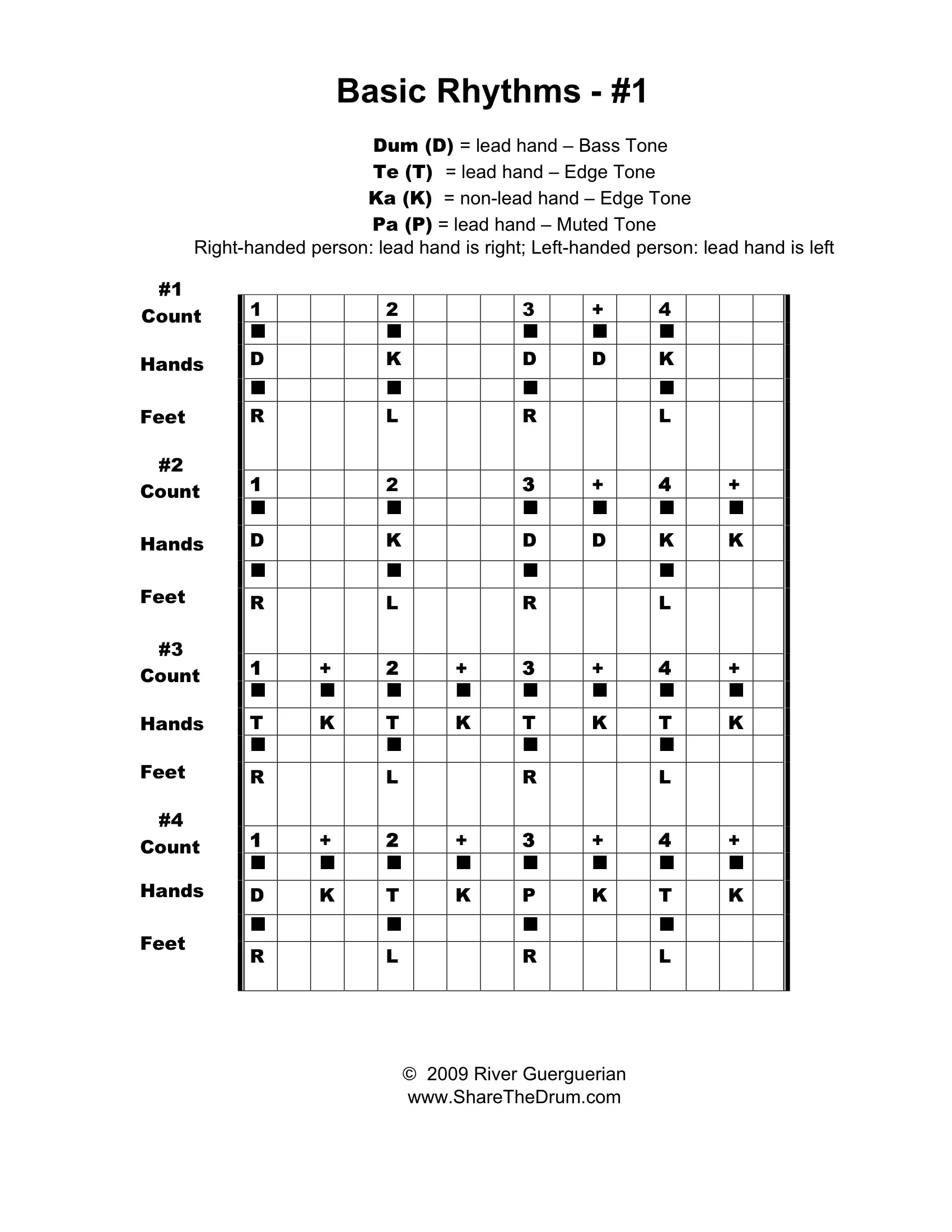HER ARE SOME BASIC PATTERNS USING MIDDLE EASTERN HAND DRUM TONES